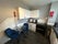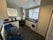 Kitchen with dinning table, full kitchen equipment, washing machine.