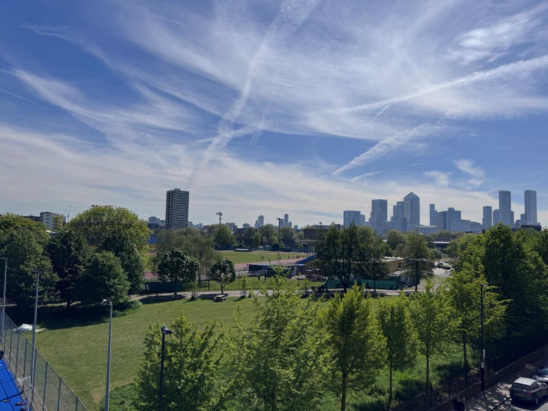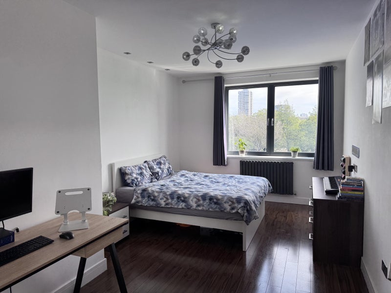 Very spacious and modern room with a large double bed, private bathroom, lots of storage (with two large double-decker closets), desk, park views and located on a quiet dead-end road within 10 minutes walk of Mile End Station and Limehouse Station for access to Central, District, Hammersmith and City Lines and DLR.