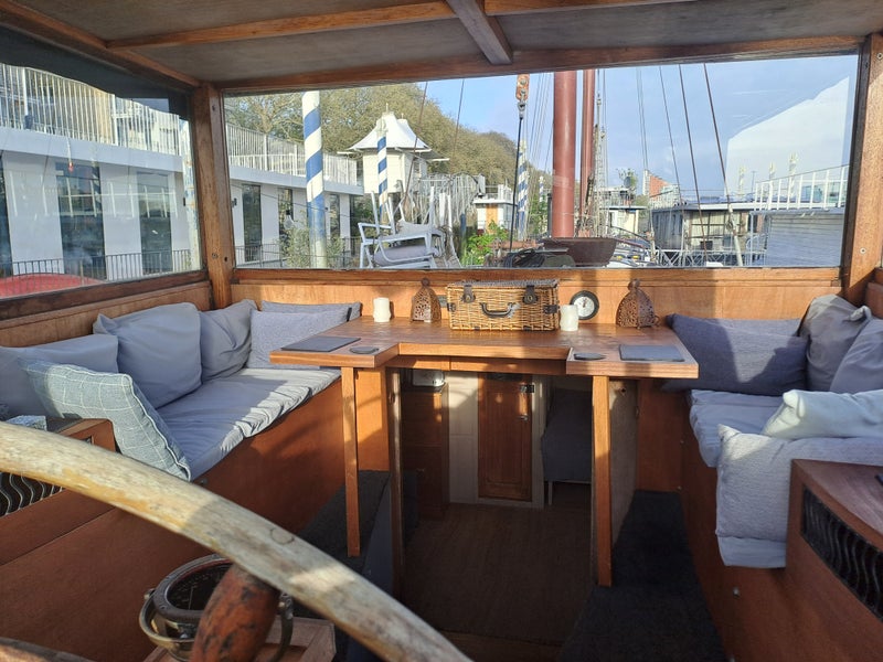 Large double room with your own living/dining area in the adjacent wheelhouse. It is onboard a historic Dutch barge on one of the most exclusive moorings in London. The mooring is located right next to Wandsworth Park.