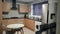Share modern kitchen with comfort appliances including washing machine, microwave oven, fridge/freezer, gas hobs + electric oven, dining table.