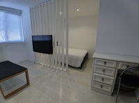 Accommodation comprises: entrance hallway, furnished bright double bedroom (TV, wardrobe, drawers, desk, chair). Spacious kitchen with breakfast bar and modern cons. Bathroom with large walk-in shower. Gas central heating, double glazed windows.