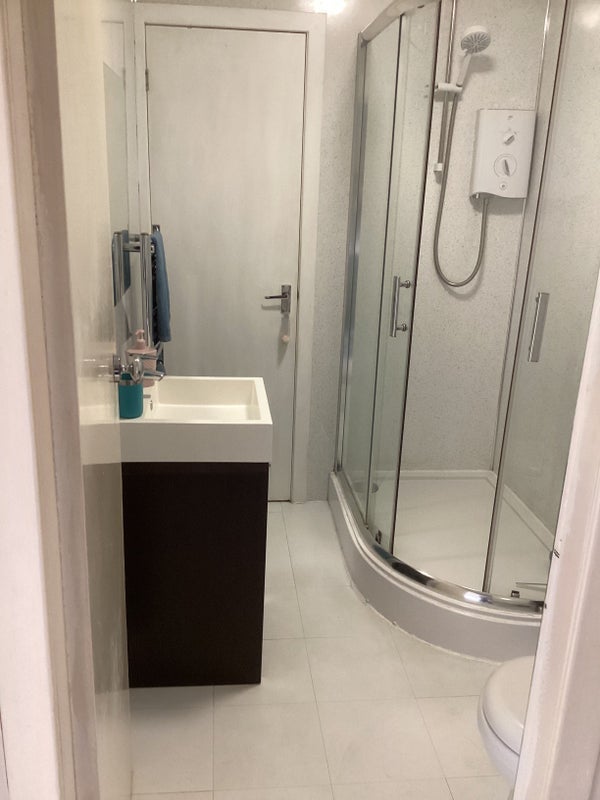 Modern shower room with electric shower.