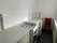 Modern kitchen with electric cooker, fridge, washing machine, microwave