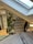 The property includes a separate bedroom, a spacious living room, and a fully equipped kitchen, finished to a modern standard with wood flooring, neutral tones, and skylights throughout.