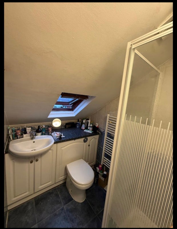 Three rooms on the first floor sharing a bathroom/toilet , another independent toilet. where there is couple in one room and two girls in the other two room. They share the communal kitchen on the ground floor.