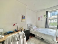 This room has desk and chair, double bed and chest of drawer . The flat is located in a very lively area with plenty of restaurant and shops. Nearby Spitalfield Market , Brick Lane Market , Shoreditch .