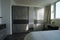 The room features a modern double bed with quality bedding, a sleek mirrored wardrobe offering ample storage, and stylish dark wood flooring throughout. Large windows allow plenty of natural light to flood the space, creating a bright and airy atmosphere. Neutral décor and contemporary furnishings give the room a clean, modern feel.