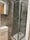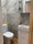 The bathroom: heated towel rail, w/c, sink and integrated shower cabin.