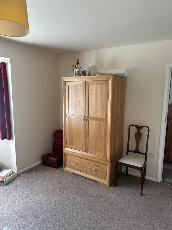 Cosy bedroom complete with double bed, wardrobe and bed side tables.