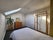 Bedroom 1 is a large room on the first floor, and comes with a double bed, double wardrobe, nightstand, built-in desk and floor-length curtains.