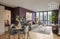 The room is fully furnished, featuring built-in wardrobes for ample storage, a large window allowing plenty of natural light, and a peaceful garden/courtyard-facing view, perfect for a calm and comfortable living space.