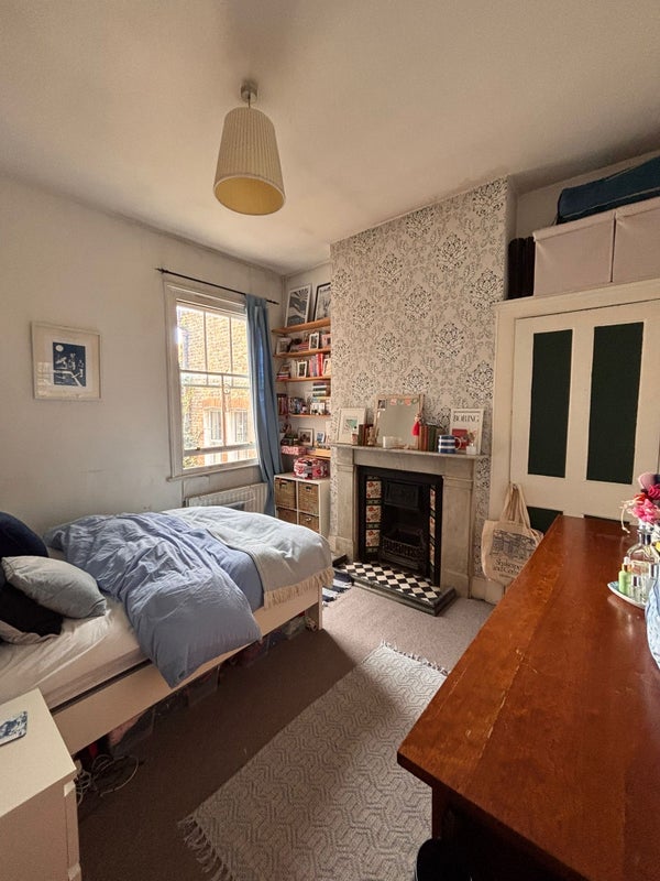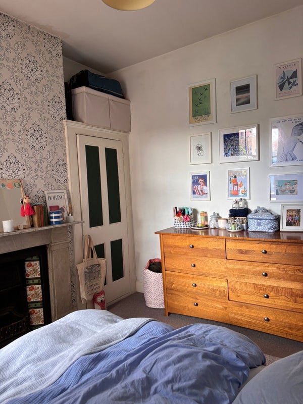 The room up for grabs is a spacious double with a large chest of drawers and a cupboard with storage on top. There’s space under the bed for extra storage, too. Plus a lovely little (non working) fireplace to sprinkle some character ✨