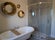 The two rooms share one bathroom, complete with bath and shower. The kitchen and living spaces are shared.