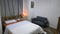 The room includes a comfortable double bed, chest of drawers, and seating area. Bright lighting, relaxing space.
