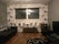 - Fully furnished living room with black leather sofas, black glass coffee table, mini stereo system, and Freeview/Freesat TV channels