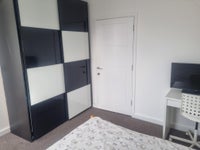 This room has its own toilet and shower. So no sharing with anyone. There are three toilets and three bathrooms in this new build 4 bed house. The property comes with spacious kitchen, garden, and free car parking.