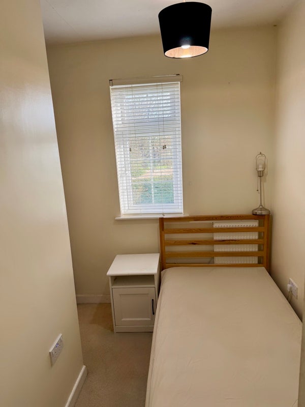 The room have all new Ikea furniture , single bed, double wardrobe, side table with lamp, extra storage and fully carpeted.
