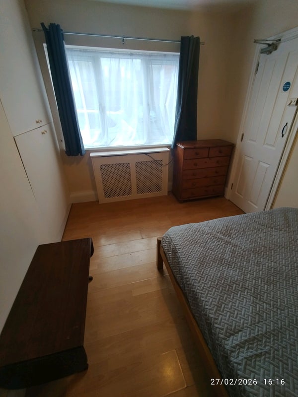 The room is suitable for a working person and includes comfortable double bed, wardrobe, Chest of drawers and bedside cabinet.
