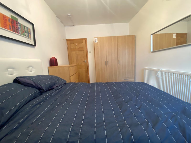 We have a lovely spacious double room in our fantastic 5 bedroom flat. The flat is in a great location with good transport links. It is suitable for one person only (sorry, we don’t accept couples). The room comes fully furnished with double bed, big wardrobe, chest of drawers, table, chair, pictures, mirror, shelves, etc. We Do Not provide the bedding such as (pillows, duvet, duvet cover, fitted sheet).