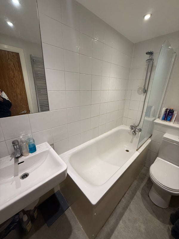Large living/kitchen area. Bathroom only shared with 1 other flatmate. Bedroom comes furnished with bed, mattress, mirror, side chest of drawers, and built in wardrobe.