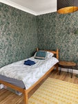 - Comfortable single bed, bedside table
