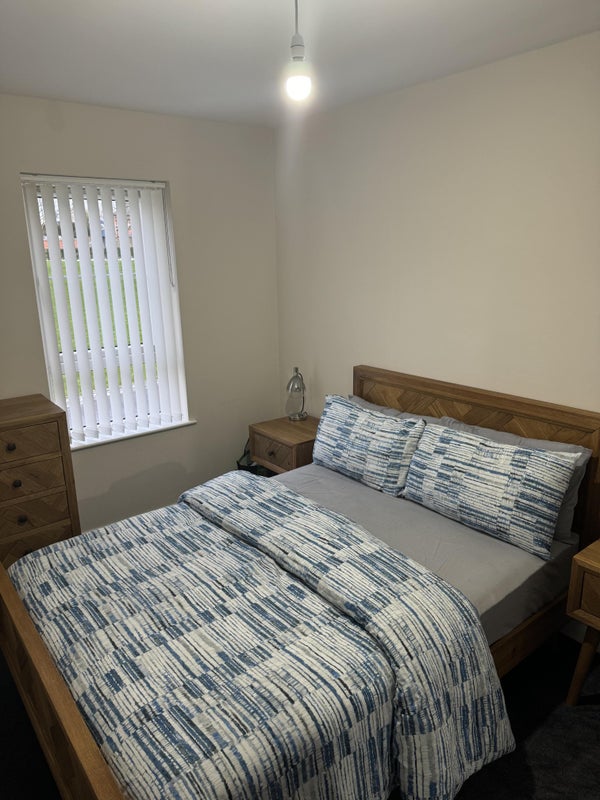 Double room (Furnished) with private bathroom available in Antrim, close to the hospital and airport. Has a private gated car park. Gas heating, electric and broadband are included.