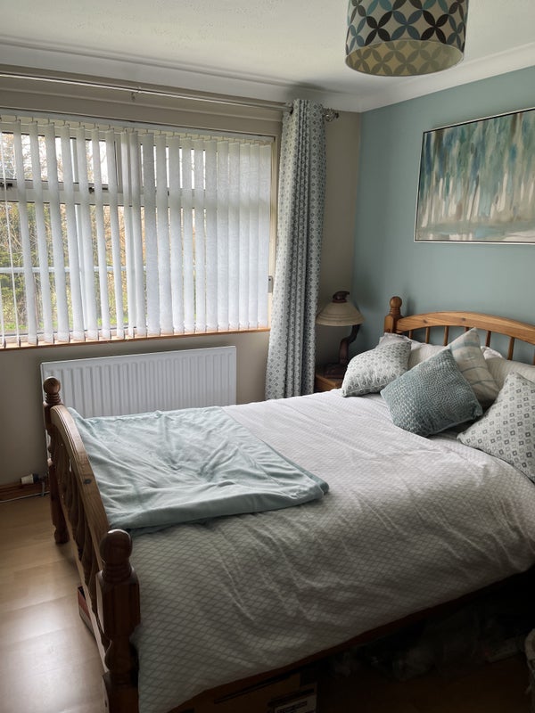 Spacious double bed room available with wardrobes, drawers and shelving. Desk available if working from home.