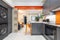Kitchen contains 2 washing machines, 2 cookers & hobs, a large double sided fridge and plenty of storage.