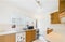 Modern kitchen with fitted upper and lower units and breakfast bar