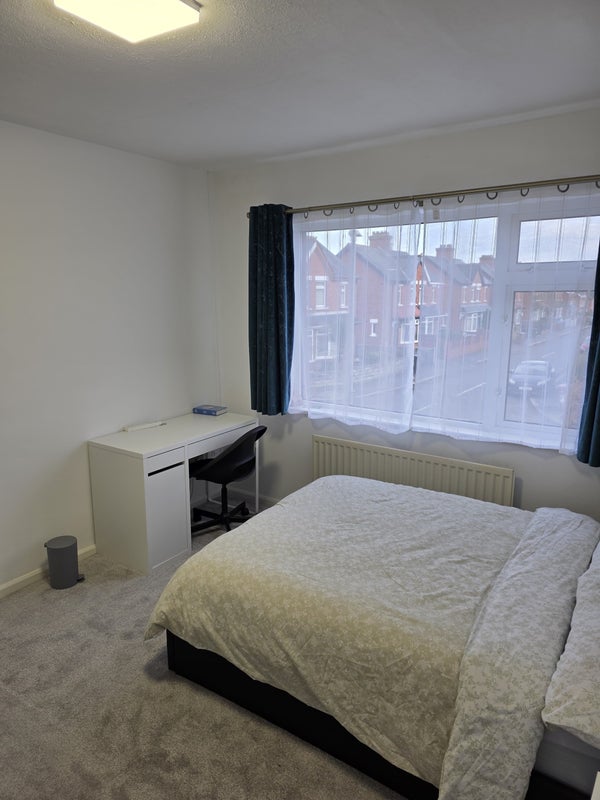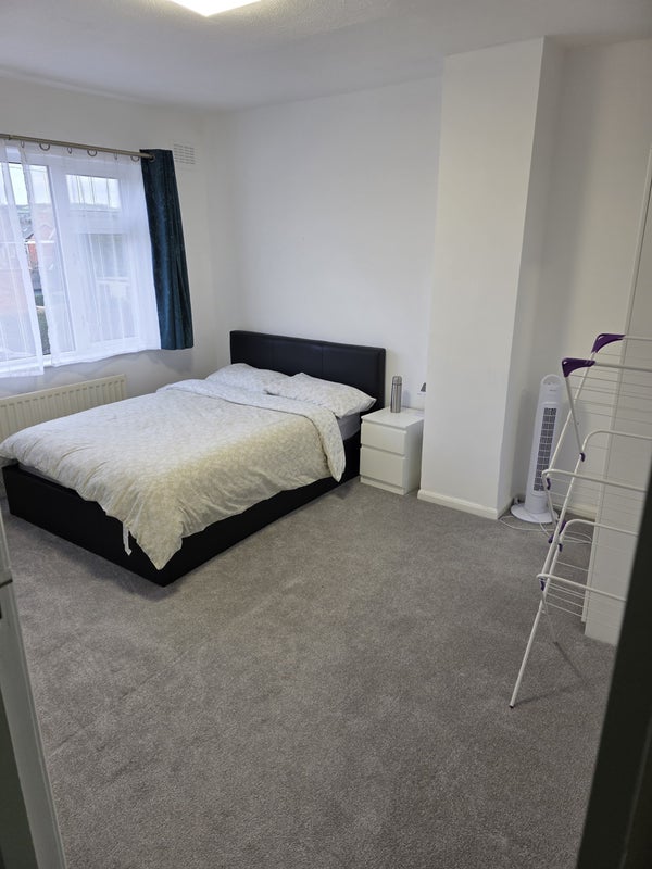 Photos show empty-ish rooms but have since been furnished with a double ottoman bed (excellent storage), workspace desk with chair and wardrobe in the double room for rent!