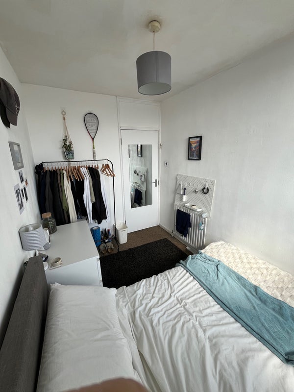 The room comes furnished with the bed and mattress included with some under bed storage , a chest of drawers, mirror a rail and an external wardrobe in the hallway. All the personal belongings in the room and wardrobe will be cleared before move in.