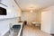 Modern eat-in kitchen with dining table, oven, microwave, washing machine, dishwasher and plenty of cupboard space