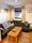 The house also has a shared living room with a 40" TV, coffee table, large corner sofa and dining table. There are two bathrooms, which are each shared by two people, and contain the usual fixtures and fittings (one has a modern design bath tub and the other has a shower cubicle).