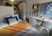 The accommodation is a Bronze Studio, offering 17 sq m of living space. It includes a double bed, private kitchenette with breakfast bar, en suite shower room, a dedicated study area, and a divider that separates the bedroom from the kitchenette.