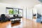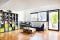The living area has a pattern cutting table and industrial sewing machine. Perfect for a fashion designers or students.