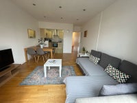 The property is only a short walking distance from Camden station, and consists of a sunny living room with open kitchen and terrace, 2 double bedrooms with built-in wardrobes, and a bathroom with bathtub.