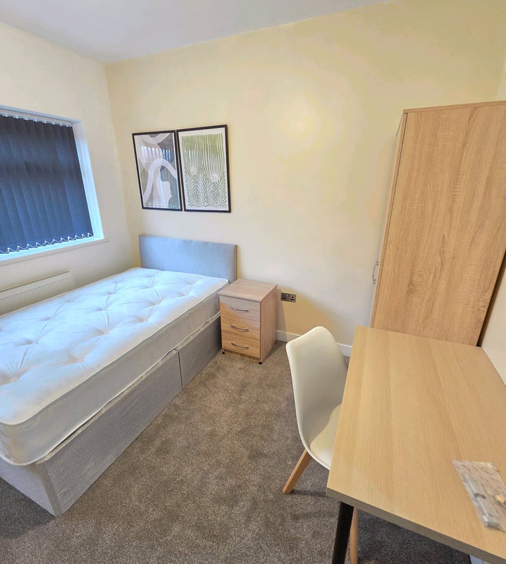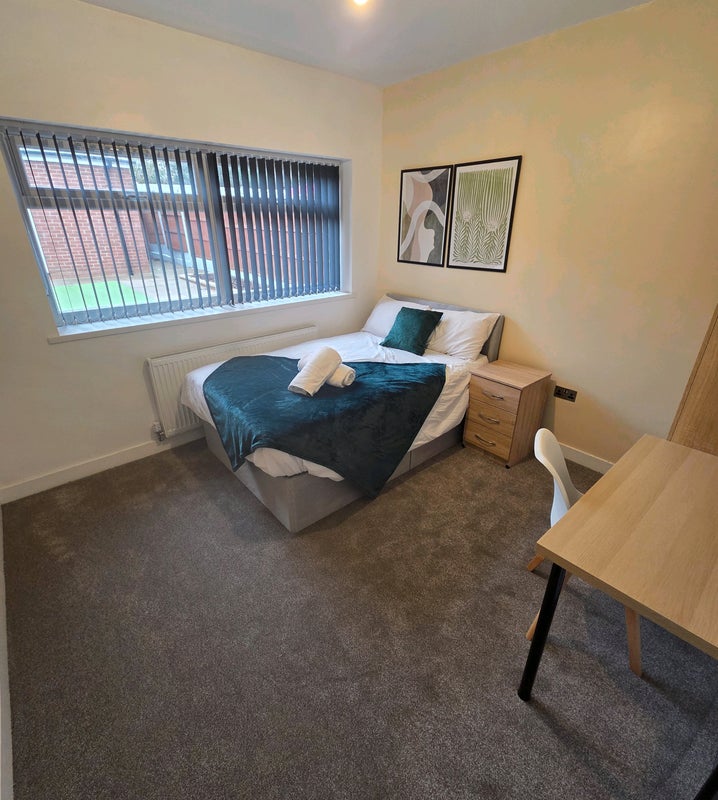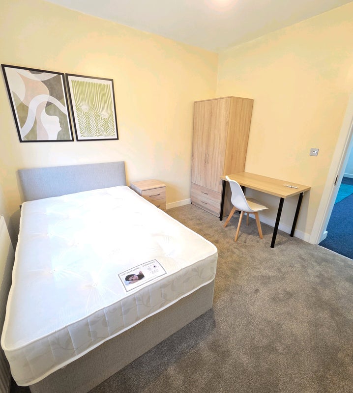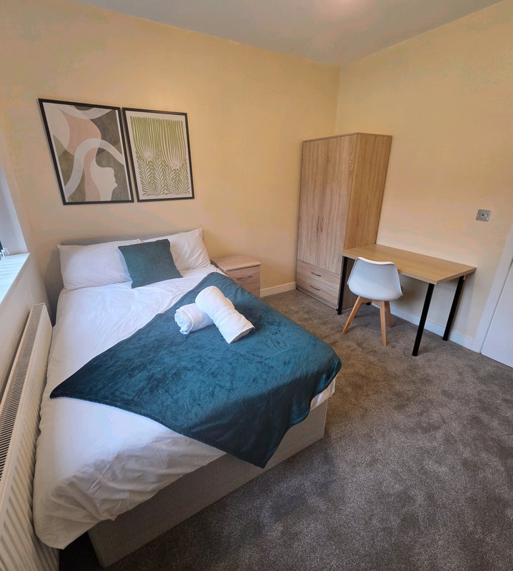 Double Rooms (£575pcm): New double bed, bedside table, wardrobe with integrated drawers, plus a desk and chair for WFH.