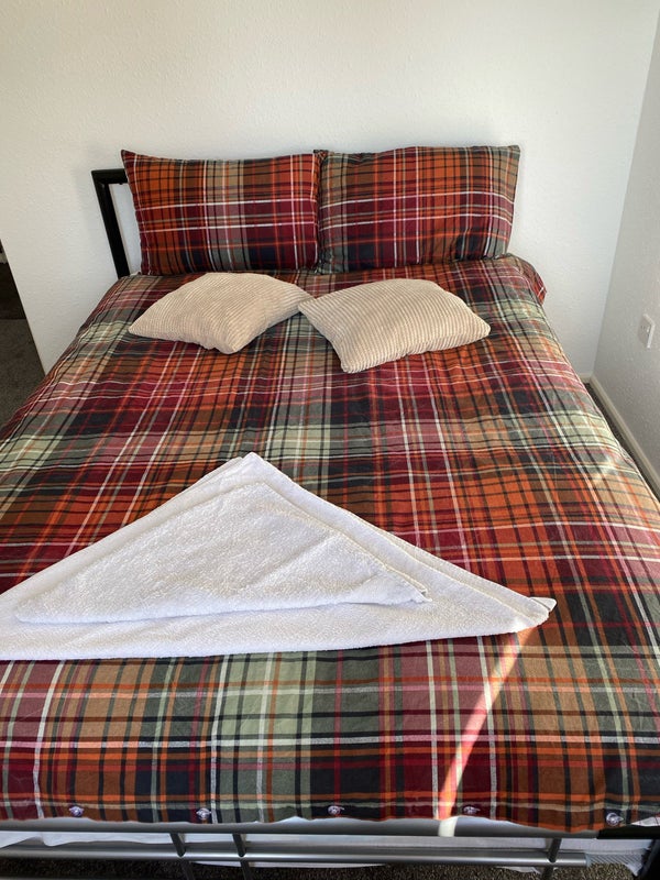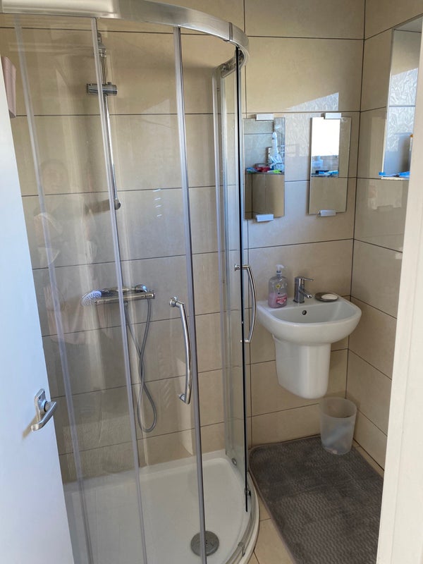 A lovely newly fully furnished double room with a toilet and a bathroom outside the room.