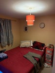 A double room furnished with double bed and wardrobe with your own bathroom with bath shower toilet sink, shared fully furnished kitchen with tv etc and garden, near town and shops close by