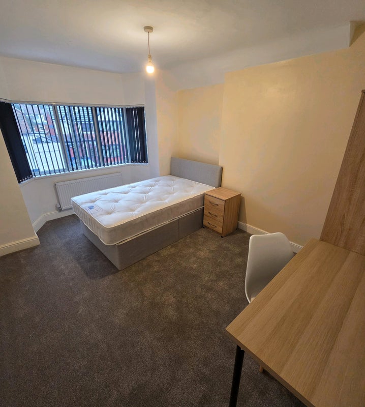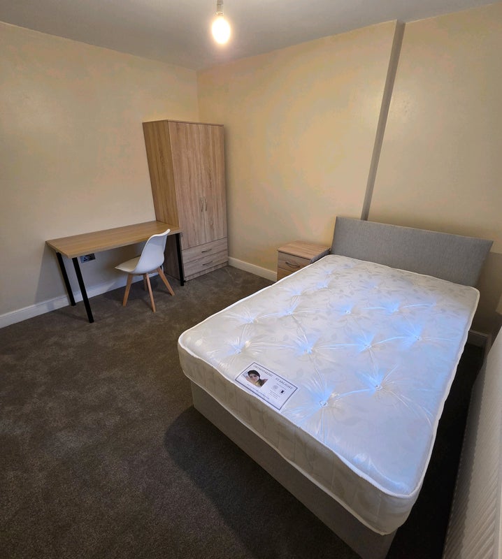 Double Rooms (£575pcm): New double bed, bedside table, wardrobe with integrated drawers, plus a desk and chair for WFH.