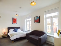 From the USB wall sockets to memory foam orthopaedic mattresses, these studios are more hotel than HMO. Each room is kitted out with a double bed, wardrobe, drawers, bedside table and food prep/ desk area with under counter fridge.