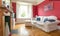 It’s a small double room at the top of the house. It's cosy with a view over the garden . The room has a wardrobe, chest of drawers, shelves, plus drawers under the bed. There’s a surprisingly large amount of storage.