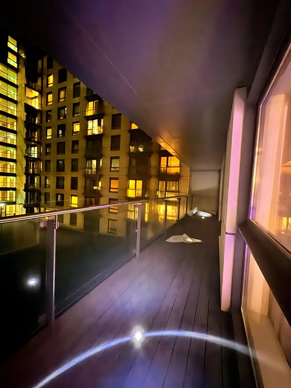 - Massive balcony facing internal courtyard, spanning whole left of flat