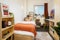Fully furnished with a ¾ sized bed, huge under-bed storage, massive desk, desk chair, wardrobe, and shelves.