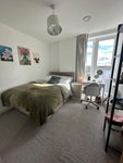 The flat has a spacious double bedroom available and you’ll have your own bathroom. There’s also a comfortable shared living area and a fully equipped kitchen, where I spend a lot of time in the evenings.