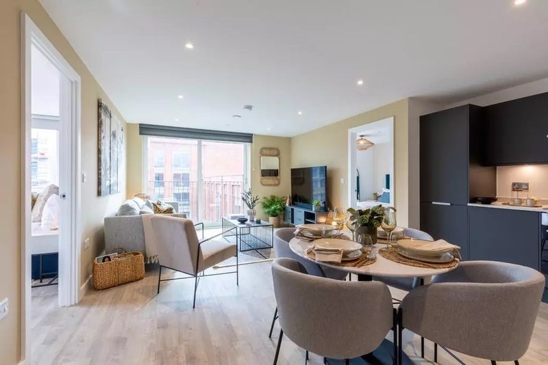 • Open-plan kitchen/living space and modern bathroom.