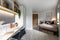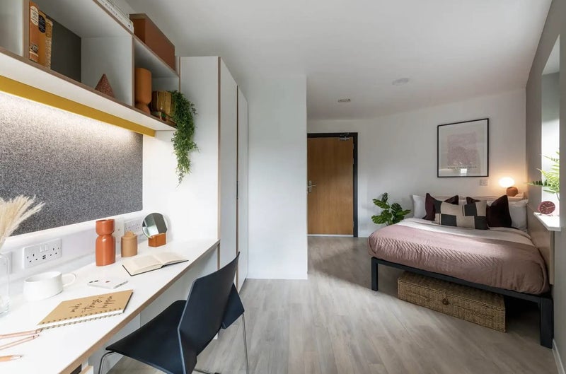 Settle into this 16m² Luxe Ensuite, designed for those seeking a superior living experience, within a shared flat accommodating 7-8 students. Located between the First and Tenth floors, these rooms offer an elevated, tranquil atmosphere with breathtaking views. Each bedroom is thoughtfully equipped with a desk, chair, small double bed, mirror, Double Glazed window, double wardrobe, and an ensuite bathroom. The communal area is bright, featuring a Large window that flood the space with natural light, creating a comfortable and inviting environment. The kitchen is fully equipped with premium appliances, including a fridge, freezer, multi-functional oven, induction hob, and microwave, providing everything needed for a comfortable living experience.