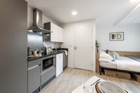 Our Luxe Studios are Located between the Ground and Eleventh floor, offering a premium living experience. With a size of 21m², these studios feature a well-designed layout, including a double bed, storage space, and a kitchenette equipped with an induction hob, fridge-freezer, and combination Microwave oven, perfect for independent living. The room also includes Double Glazed windows that allow in natural light to fill the space, creating a bright and welcoming atmosphere. Ideal for those who seek privacy, comfort, and a peaceful environment.