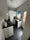 There is a spacious shared living room and bathroom with a smaller kitchen.