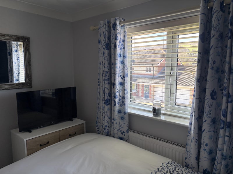 Lovely cosey double room with double wardrobe and drawers. House is situated on a quiet cul-de-sac and is 5 minutes to the motorway and the train station.